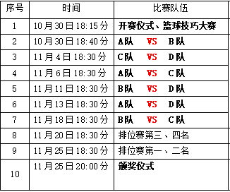 籃球技巧大賽項目為:運球繞樁、精準傳球、運球上籃、投籃挑戰(zhàn),由4支球隊分別挑選2名球員攜女領隊參與,完成比賽的時間最短的隊伍獲勝。